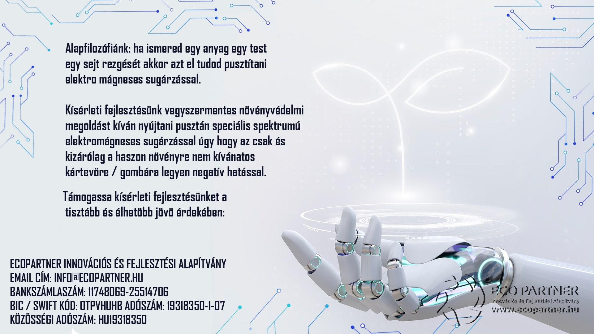 Célunk egy olyan növényvédelmi technológia kifejlesztése, amely teljesen vegyszermentesen óvja meg a növénykultúrát.